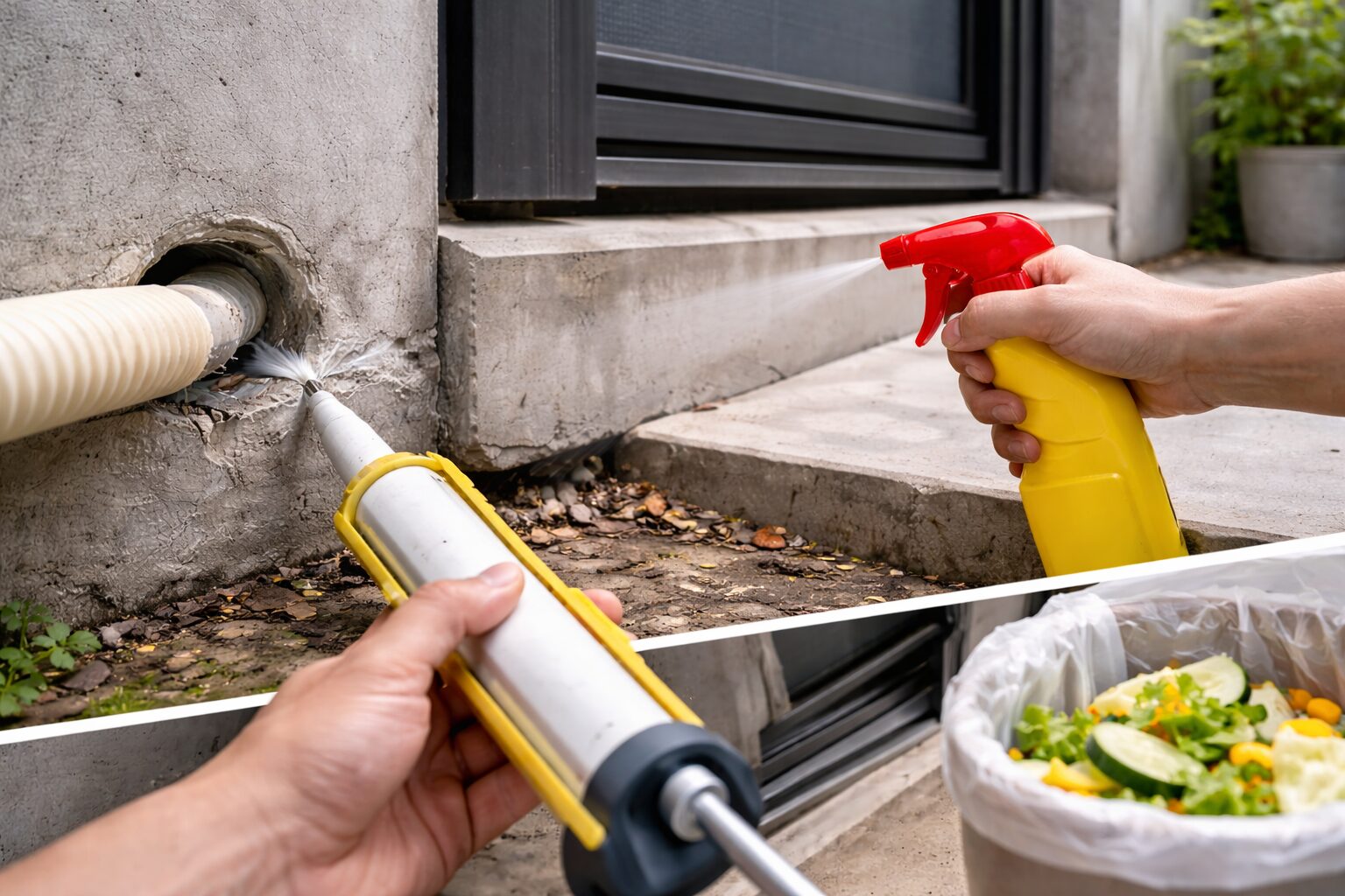 市販のパテや隙間テープを使い、目に見える隙間を塞ぐだけでも侵入リスクは下がります。